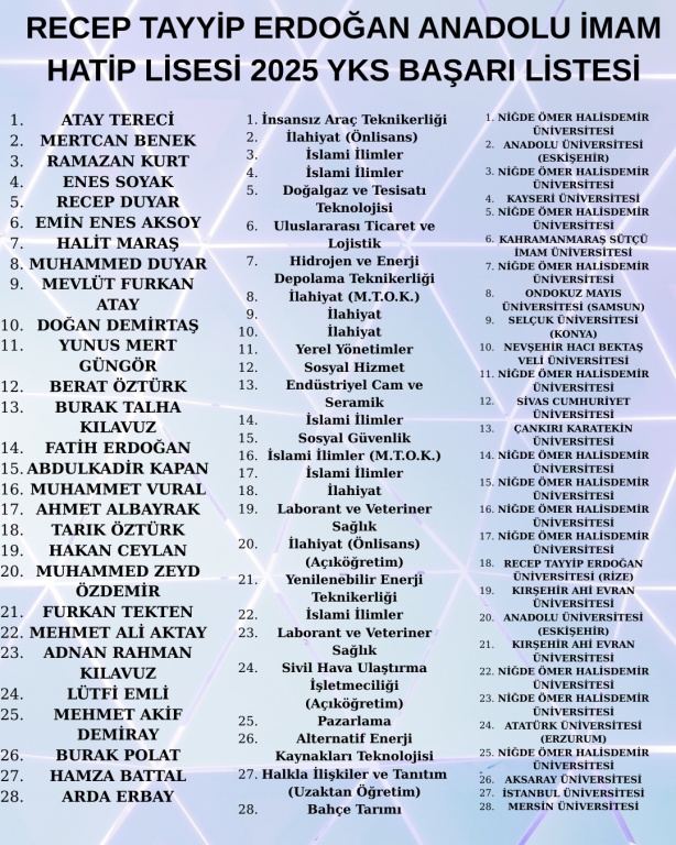 2024-2025 EĞİTİM ÖĞRETİM YILI YKS YERLEŞTİRME SONUÇLARIMIZ